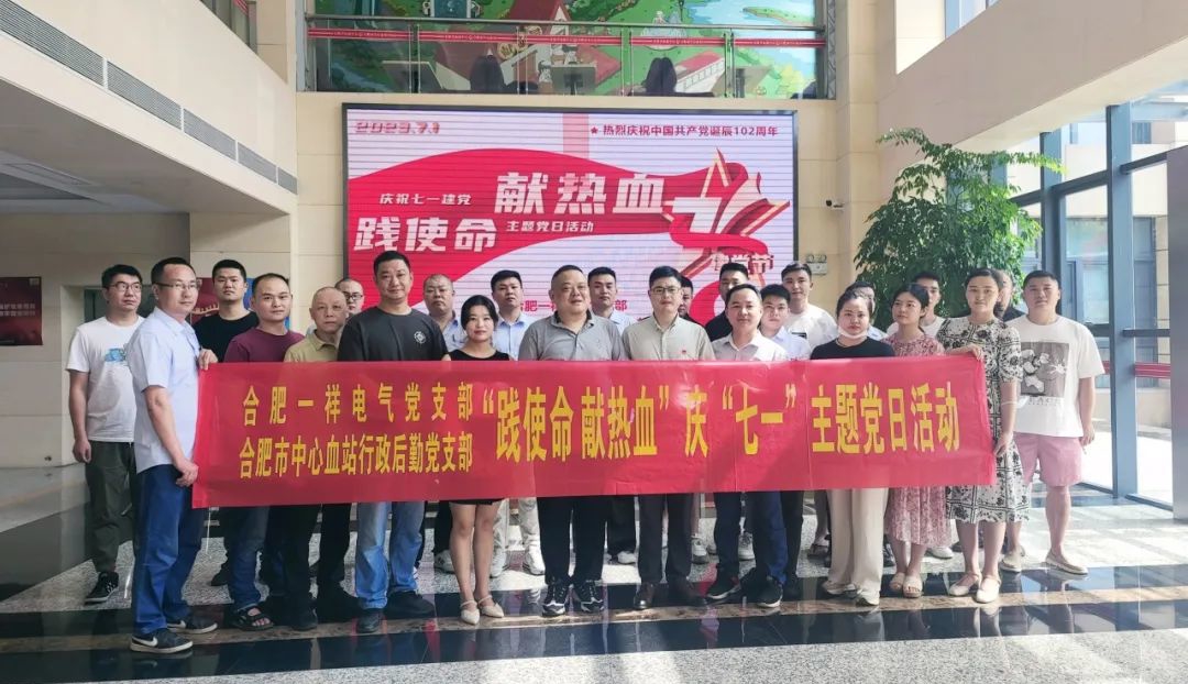 為慶祝中國(guó)共產(chǎn)黨成立102周年,激勵(lì)黨員大力弘揚(yáng)偉大建黨精神,“奉獻(xiàn)、友愛(ài)、互助、進(jìn)步”,充分發(fā)揮黨員先鋒模范作用。2023年7月1日,合肥一祥電氣技術(shù)有限公司黨支部聯(lián)合合肥市中心血站行政后勤黨支部共同開(kāi)展了”踐使命 獻(xiàn)熱血”一一慶”七一”主題黨日活動(dòng),用熱血詮釋初心使命,獻(xiàn)禮黨的生日。用實(shí)際行動(dòng)奉獻(xiàn)愛(ài)心,傳播大愛(ài)和溫暖。